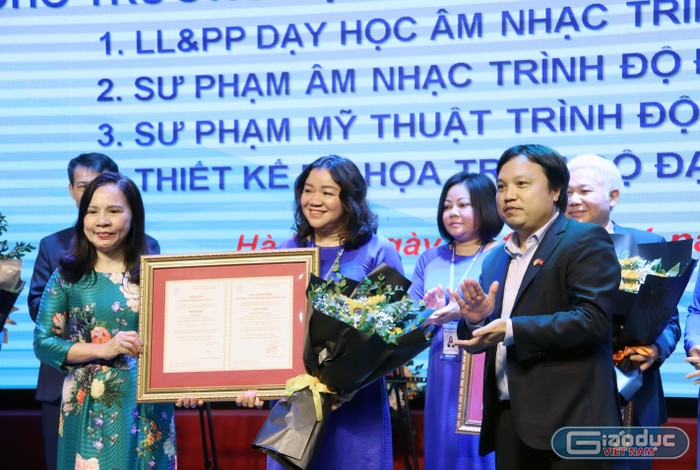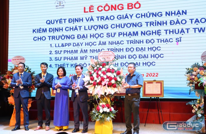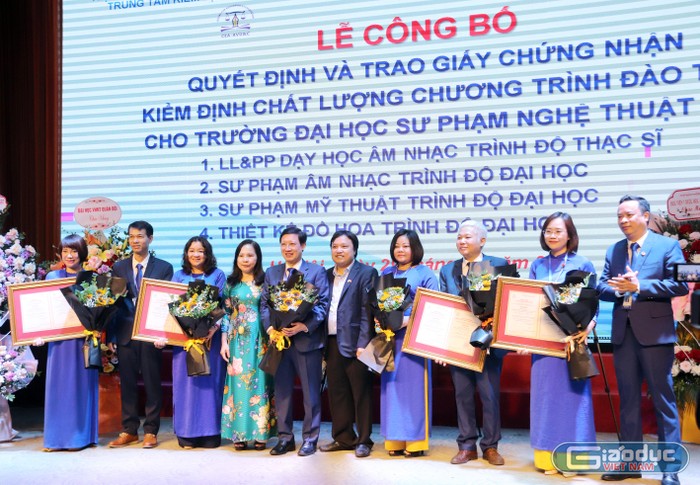 Ông Nguyễn Anh Tuấn – Chánh Văn phòng Trung tâm Kiểm định chất lượng Giáo dục (Hiệp hội Các trường đại học, cao đẳng Việt Nam) công bố Quyết định cấp Giấy chứng nhận kiểm định chất lượng Chương trình đào tạo đối với ngành Sư phạm Âm nhạc, Sư phạm Mỹ thuật, Thiết kế đồ họa – trình độ đại học; ngành Lý luận và phương pháp dạy học Âm nhạc – trình độ thạc sĩ.