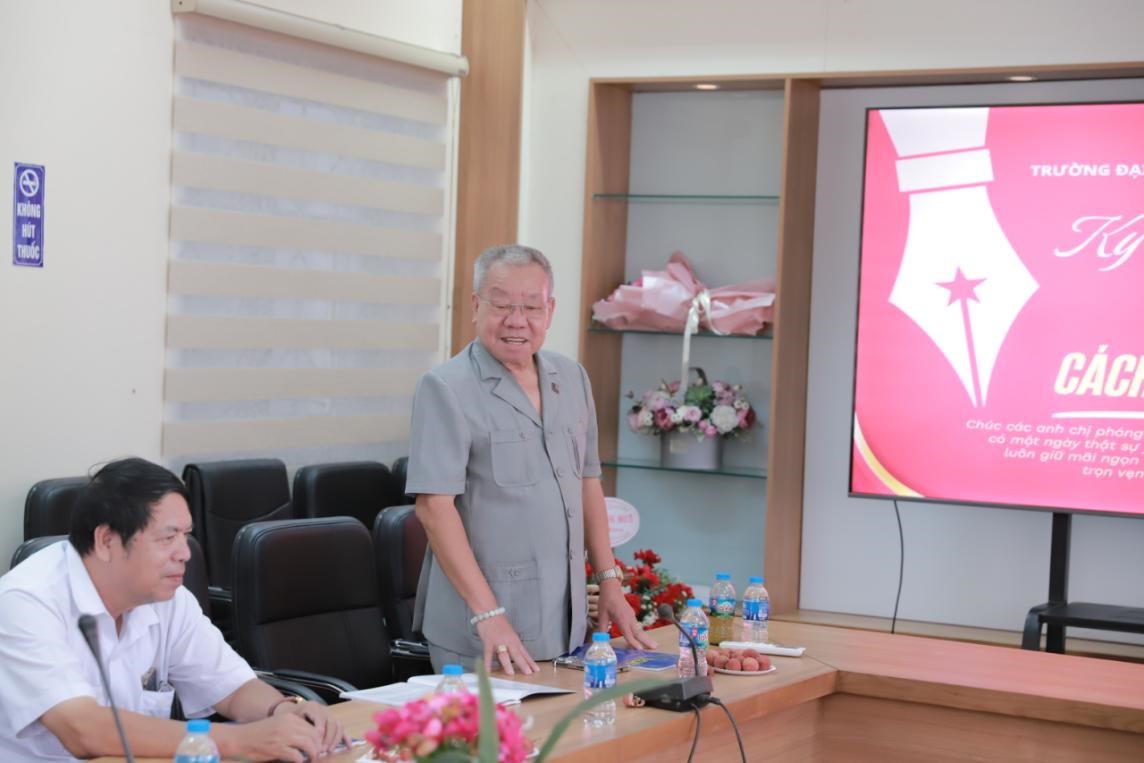 Dự buổi gặp mặt, về phía lãnh đạo cơ quan chủ quản có: ThS. Trịnh Thị Thanh – Phó Bí thư Đảng uỷ, Phó Hiệu trưởng, TS. Nguyễn Văn Định – ĐUV, Phó Hiệu trưởng Nhà trường cùng đại diện Lãnh đạo các đơn vị trong trường.