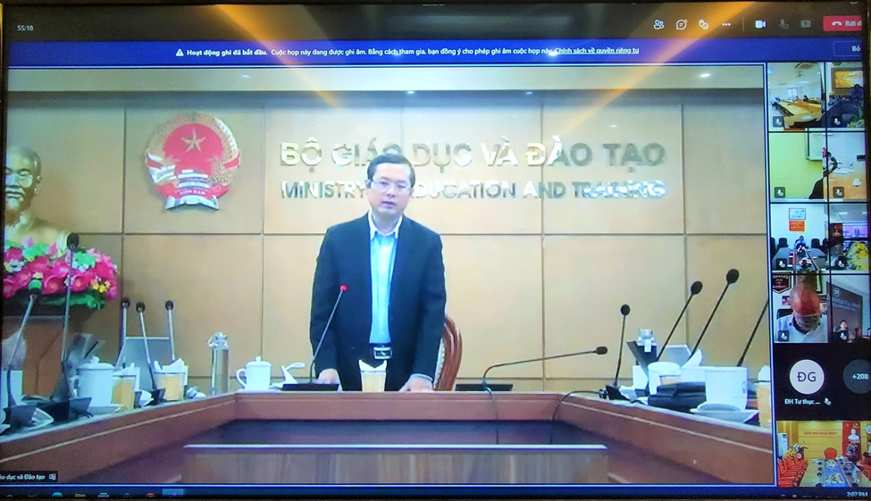NUAE – Chiều ngày 01/12, Bộ Giáo dục và Đào tạo tổ chức Hội thảo trực tuyến lấy ý kiến góp ý về Dự thảo Chiến lược phát triển giáo dục giai đoạn 2021 – 2030, tầm nhìn đến năm 2045 với hơn 300 điểm cầu trên toàn quốc. Thứ trưởng Bộ Giáo dục và Đào tạo Nguyễn Văn Phúc chủ trì Hội thảo.