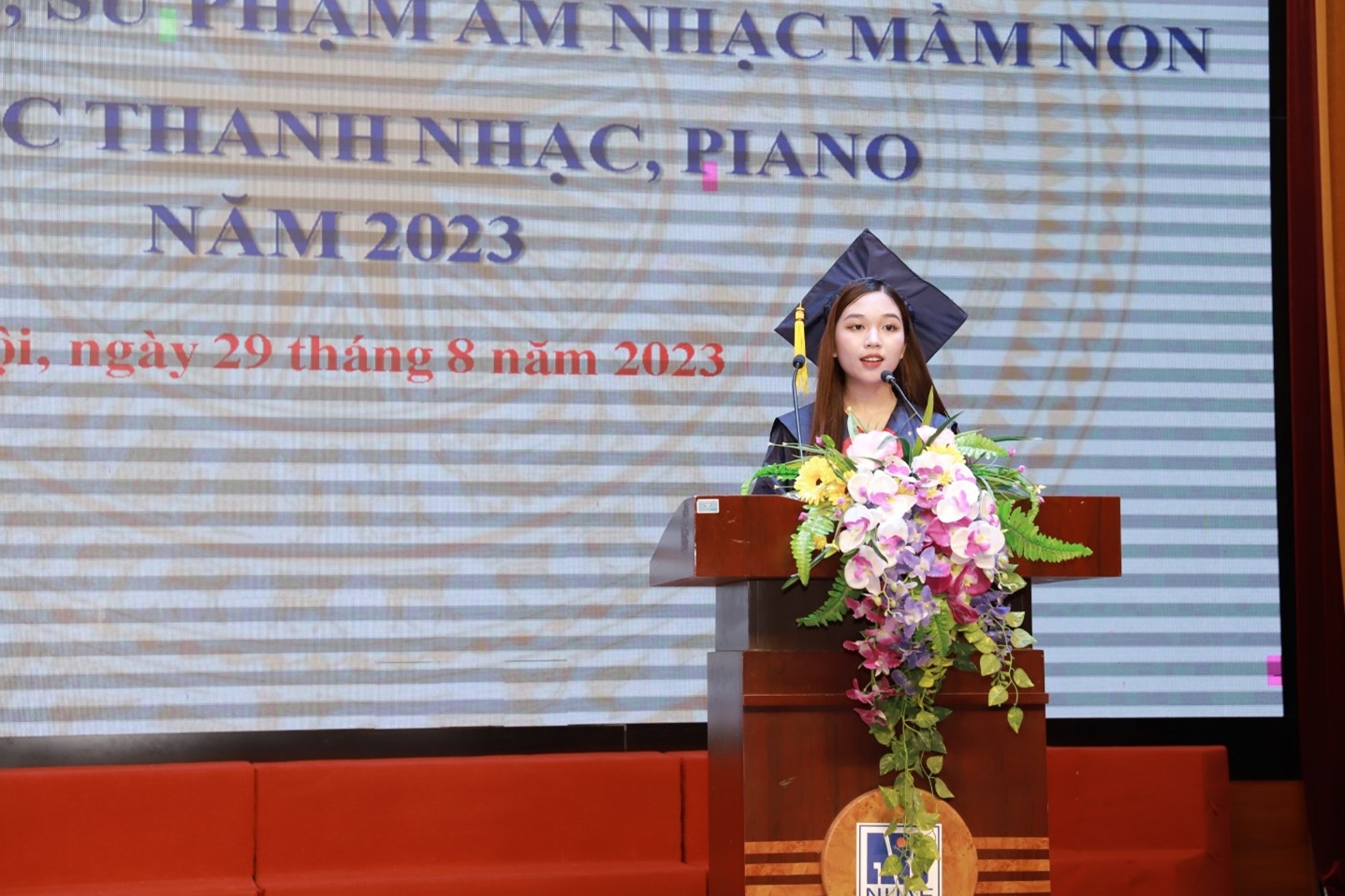 nhận hoa cảm ơn của các tân cử nhân