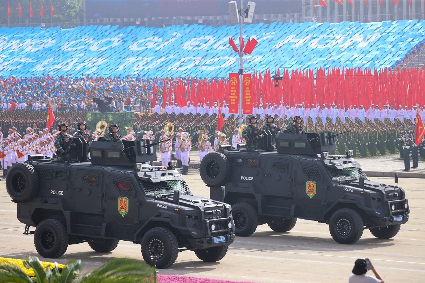 Chương trình diễu binh, diễu hành diễn ra với sự tham gia của 6 lực lượng với hơn 30 nghìn người. Trong đó, lực lượng diễu binh, diễu hành gồm 4 khối Nghi trượng; 43 khối đại diện lực lượng vũ trang nhân dân (26 khối Quân đội, 17 khối Công an); 4 khối quân đội nước ngoài, gồm: Trung Quốc, Nga, Lào, Campuchia; lực lượng xe, pháo quân sự, xe đặc chủng Công an; lực lượng diễu binh trên biển; 12 khối diễu hành quần chúng; 1 khối Văn hóa -Thể thao.