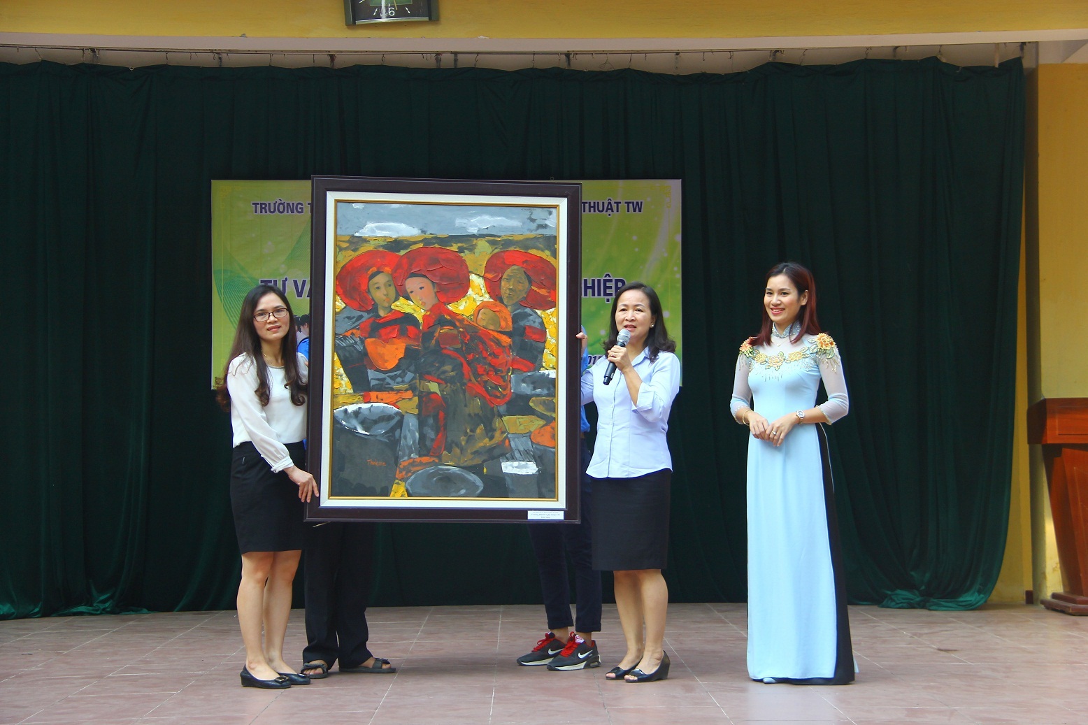 Tham dự chương trình tư vấn tuyển sinh, về phía Trường ĐHSP Nghệ thuật TW có ThS. Hà Thanh Hương – Trưởng phòng Đào tạo, đại diện cán bộ, giảng viên và sinh viên. Về phía Trường THPT Tây Hồ có cô Phạm Thị Minh Tâm – Phó Hiệu trưởng, các thầy cô trong Ban giám hiệu và đông đảo thầy cô giáo, học sinh Nhà trường.