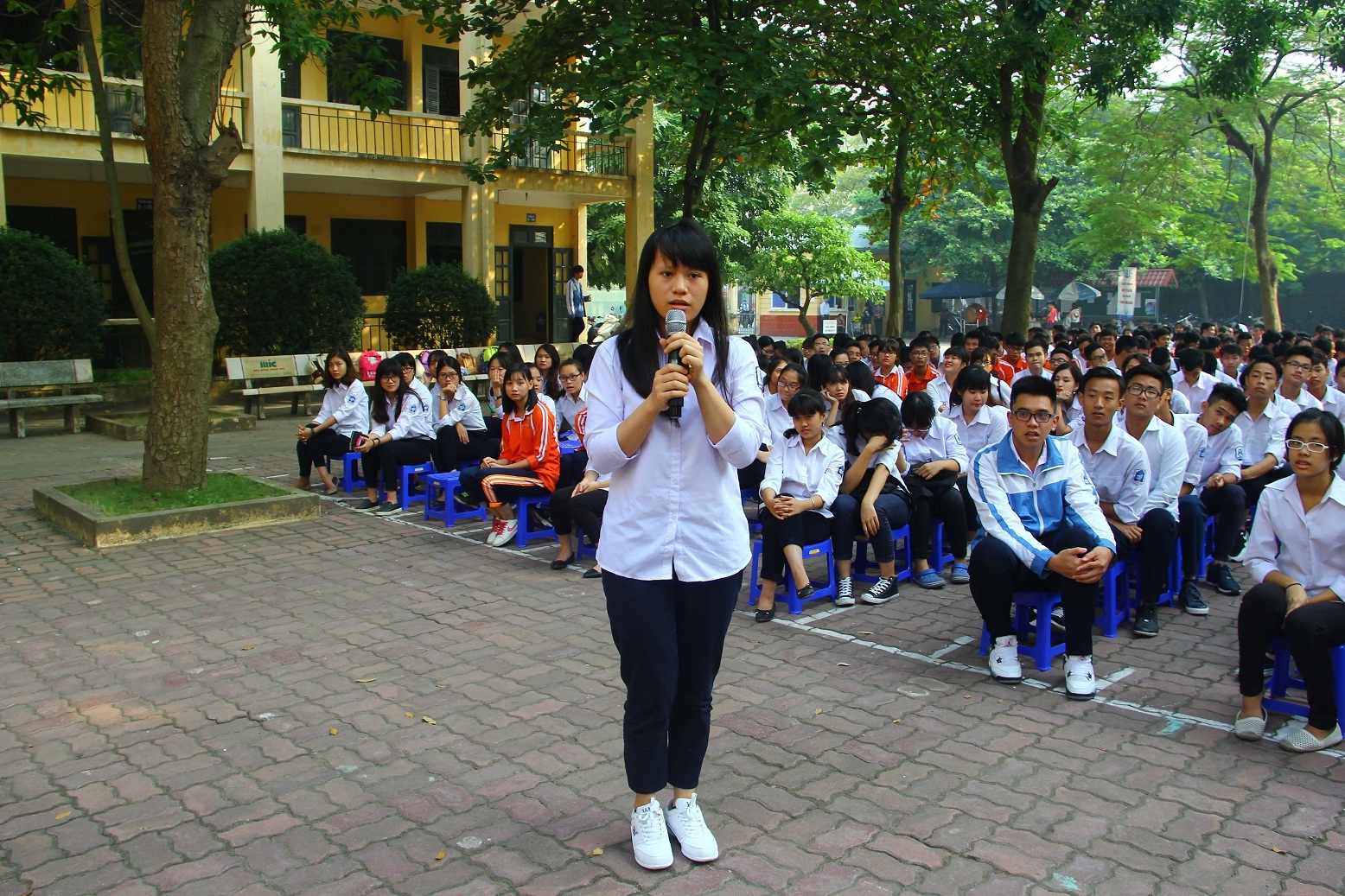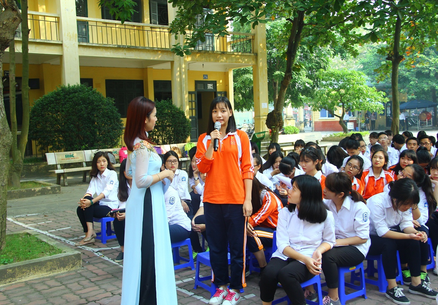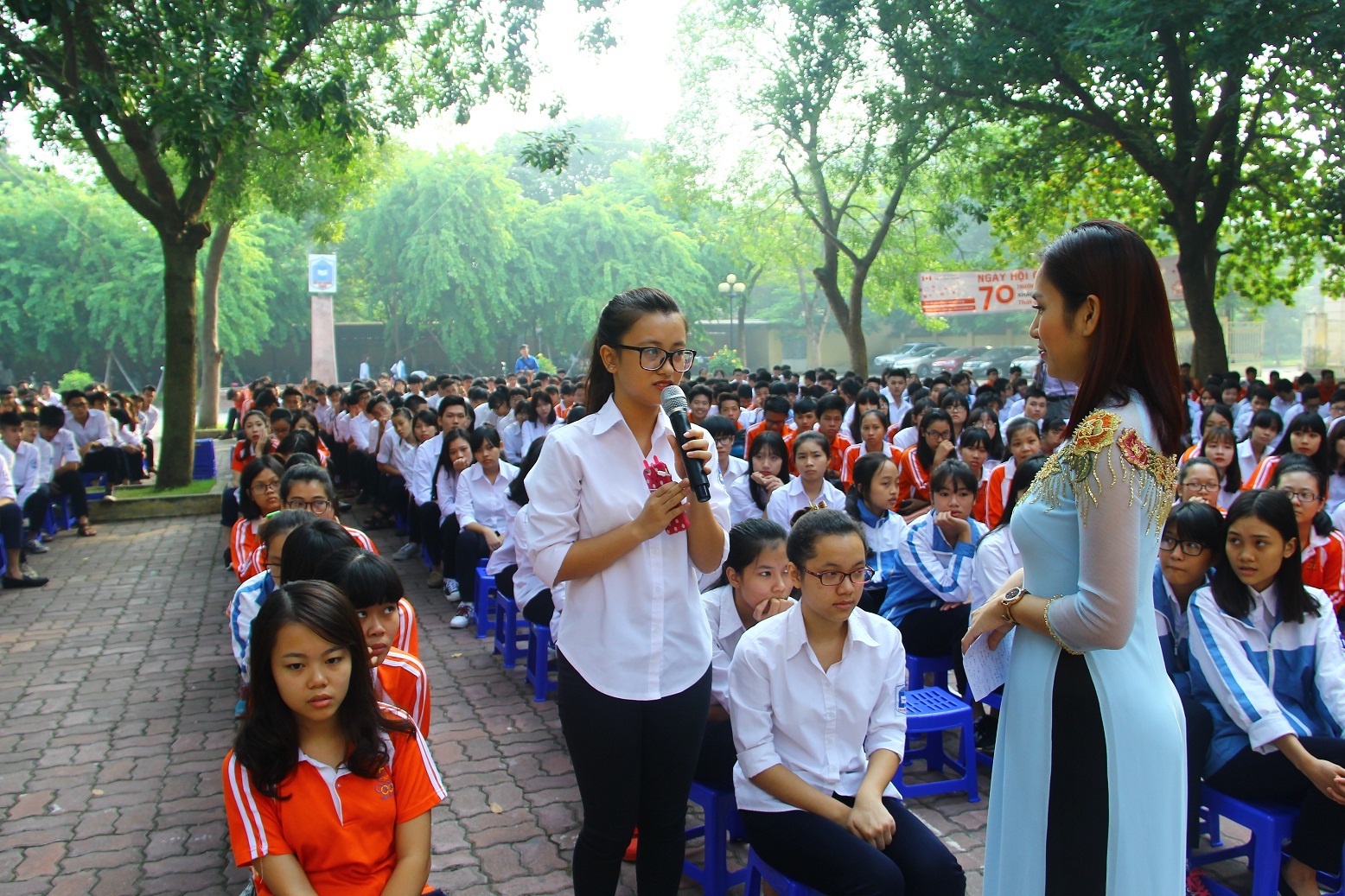 Học sinh Phạm Thúy Quỳnh, lớp 12A10 – Trường THPT Tây Hồ đặt câu hỏi tại chương trình