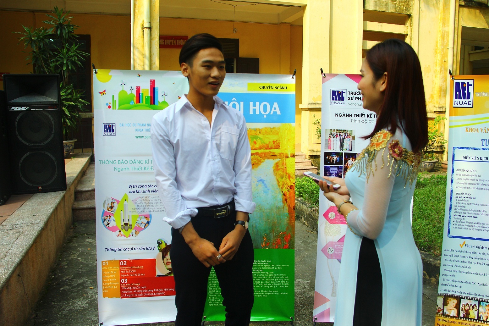 Trong khuôn khổ chương trình, ThS. Hà Thanh Hương – Trưởng phòng Đào tạo, đại diện cho Trường ĐHSP Nghệ thuật TW đã phổ biến khá chi tiết về hình thức tuyển sinh của Trường. Thực hiện Đề án tự chủ tuyển sinh năm 2015 đã được Bộ Giáo dục và Đào tạo phê duyệt theo Công văn số 1295/BGDĐT – KTKĐCLGD ngày 19/3/2015, Trường ĐHSP Nghệ thuật TW tiến hành xét tuyển môn Ngữ văn cho tất cả các ngành, hệ đào tạo, tổ chức thi tuyển các môn năng khiếu theo khối N cho ngành ĐHSP Âm nhạc, ĐHSP Âm nhạc Mầm non, ĐH Quản lý văn hóa…, khối H cho ngành ĐHSP Mỹ thuật, ĐHSP Mỹ thuật Mầm non, ĐH Thiết kế Thời trang, ĐH Thiết kế Đồ họa, ĐH Hội họa…, khối S cho ngành ĐH Diễn viên kịch – Điện ảnh.