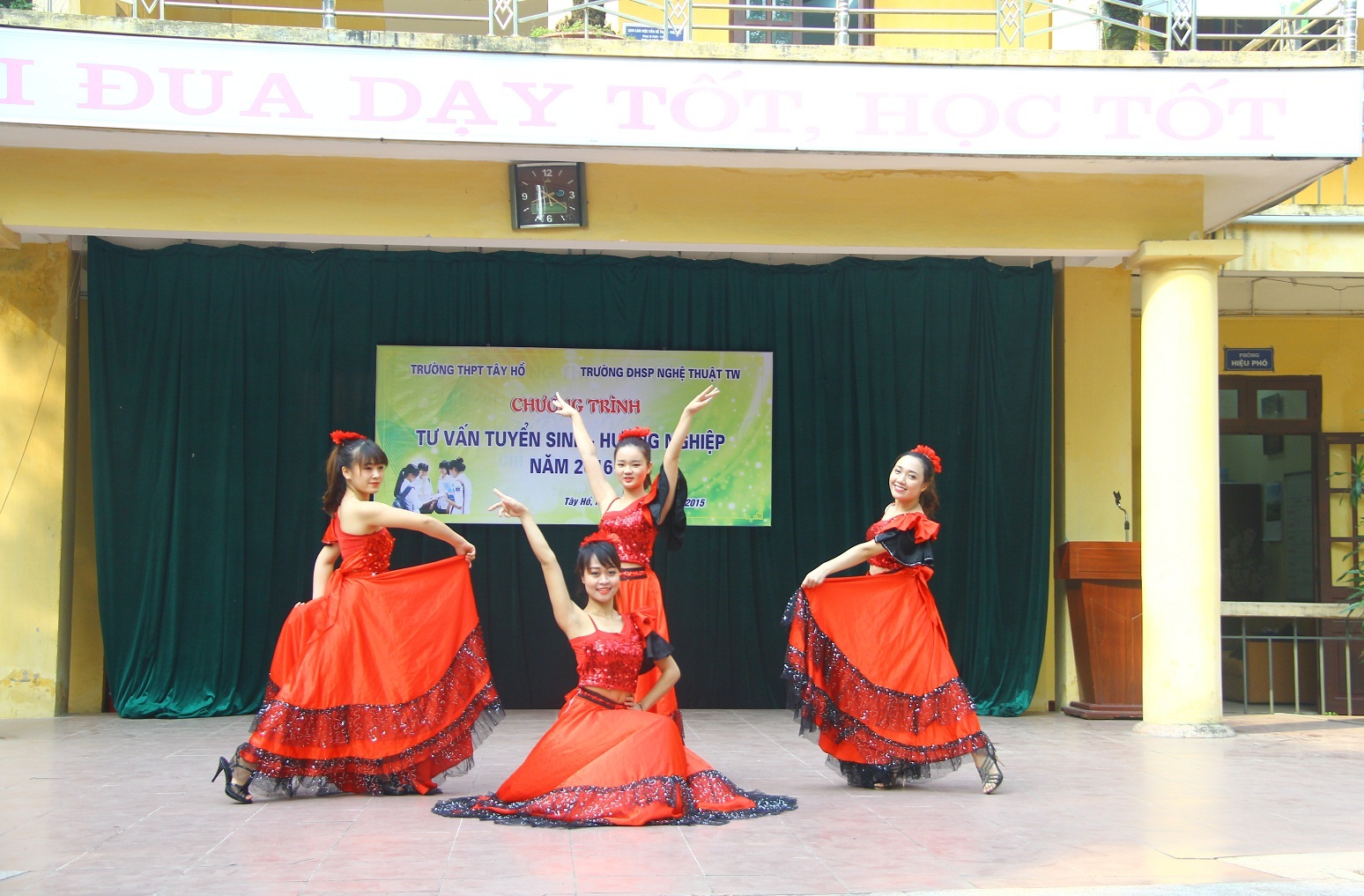 Tiết mục “nhảy hiện đại” của các em học sinh lớp 11D1,11D2 Trường THPT Tây Hồ