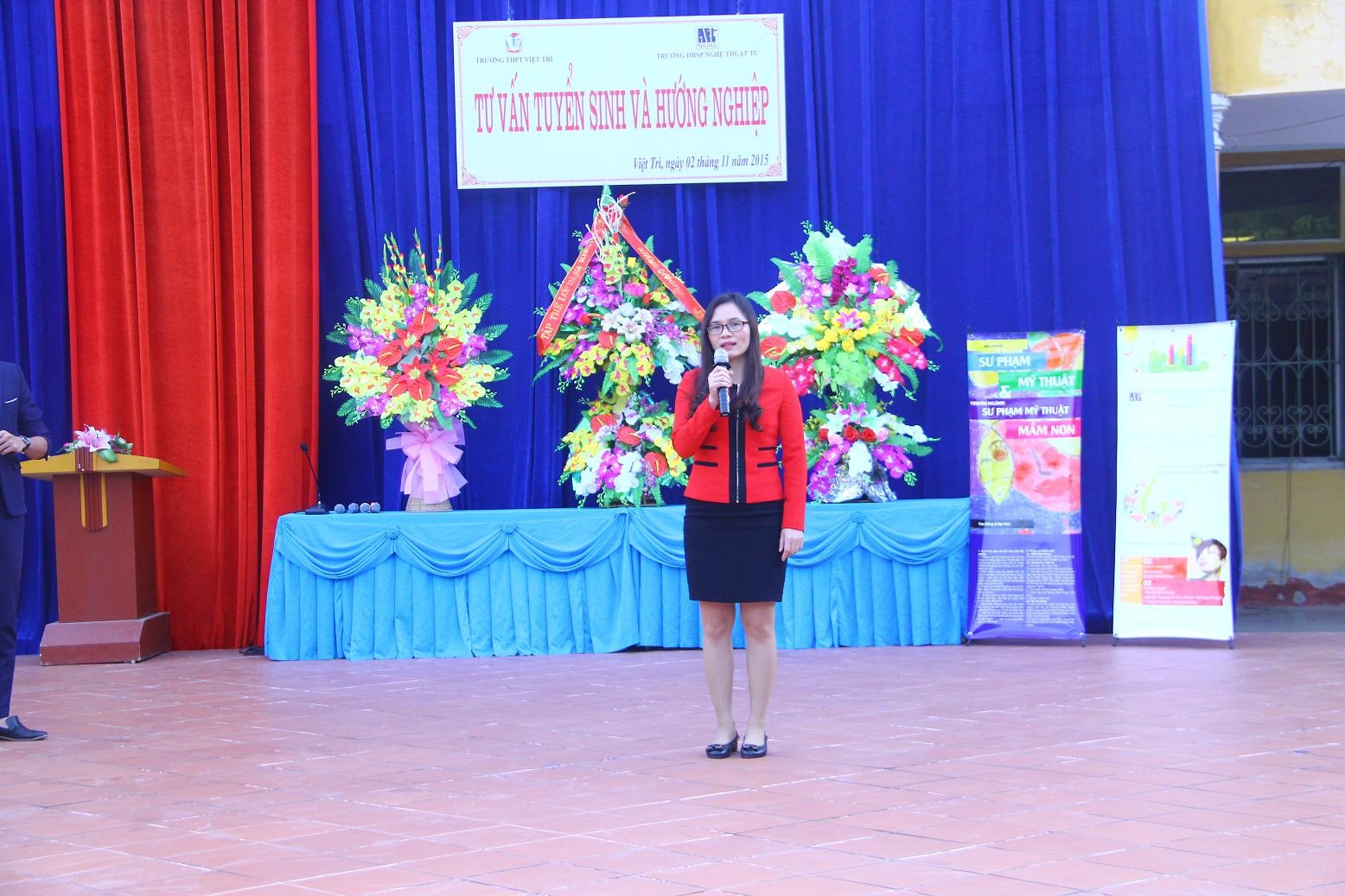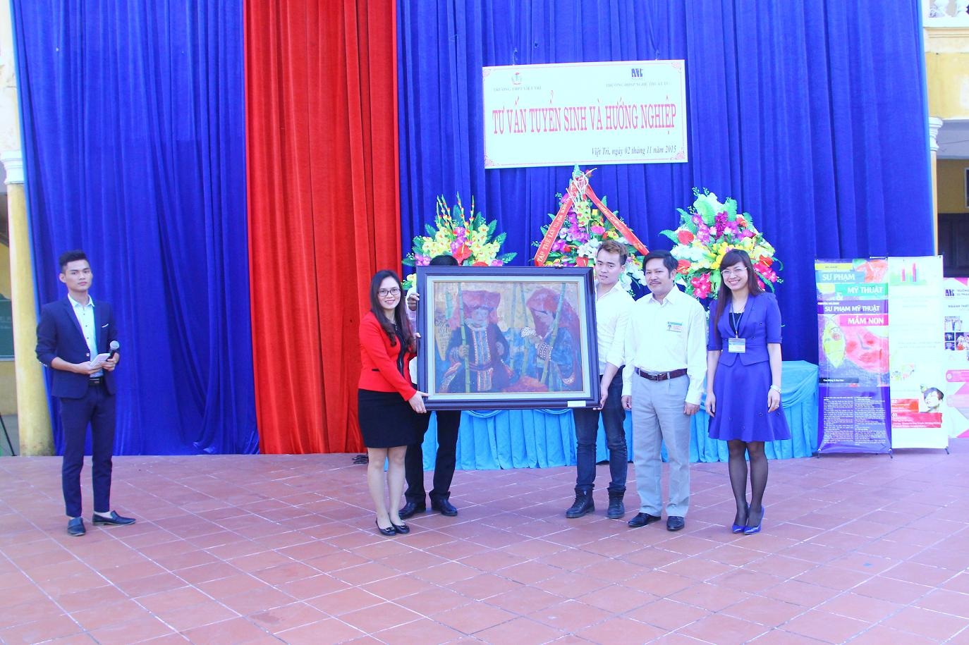 Sau những tiết mục văn nghệ của sinh viên Trường ĐHSP Nghệ thuật TW, đoàn cán bộ tư vấn tuyển sinh của Trường đã giới thiệu tới Ban giám hiệu, cán bộ, giáo viên và học sinh Trường THPT Việt Trì chặng đường 45 năm xây dựng và trưởng thành của Trường ĐHSP Nghệ thuật TW – cái nôi đào tạo giáo viên nghệ thuật hàng đầu trong cả nước. Đội ngũ giảng viên của Trường giỏi chuyên môn và tâm huyết với nghề; nhiều thầy cô là các nghệ sĩ nổi tiếng, có đóng góp quan trọng trong lĩnh vực nghệ thuật của đất nước. Sinh viên của Trường sau khi tốt nghiệp sẽ trở thành những giáo viên nghệ thuật, các ca sĩ, diễn viên, nhà thiết kế nhà quản lý văn hóa giỏi.