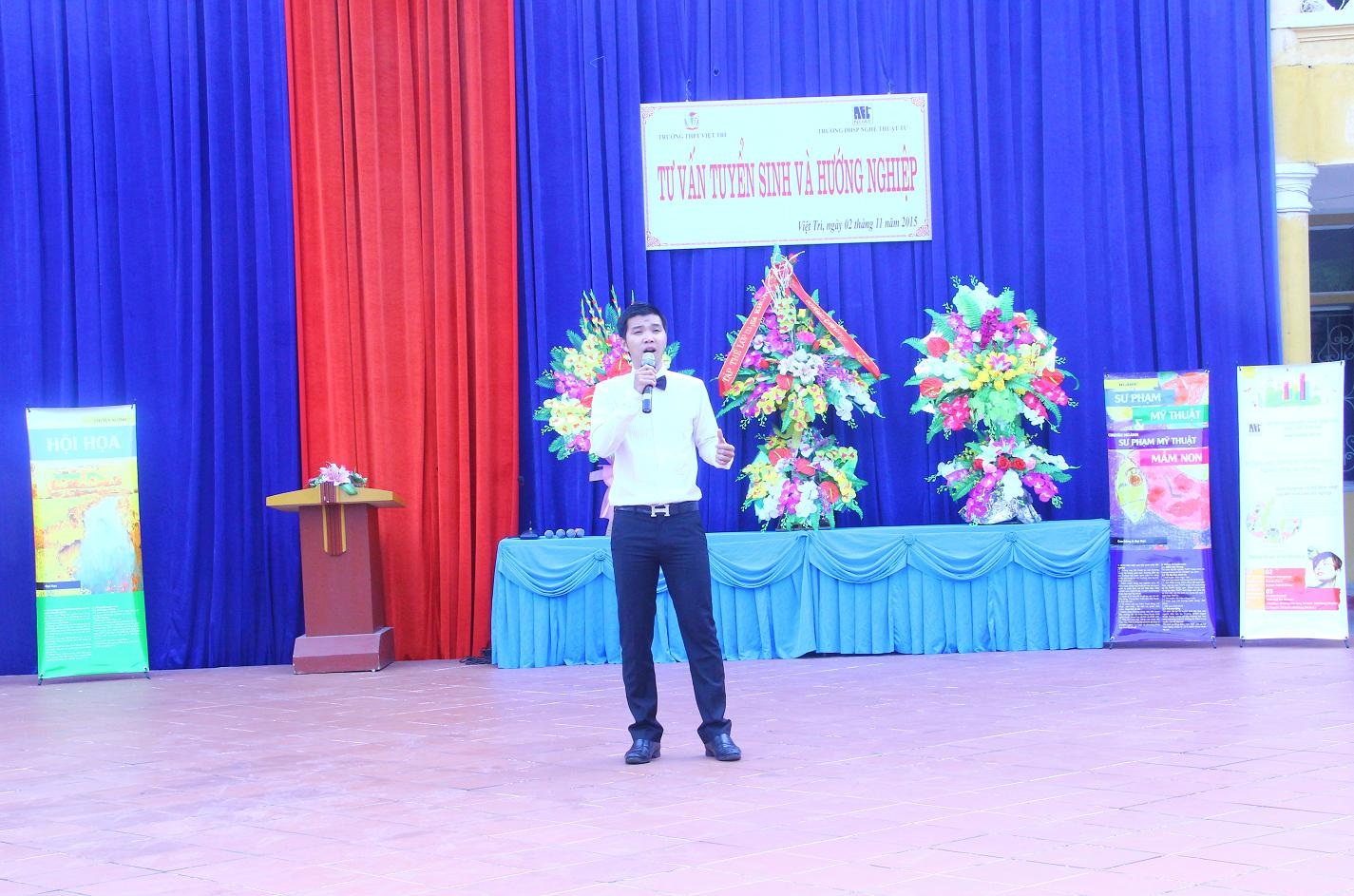 Sau những tiết mục văn nghệ của sinh viên Trường ĐHSP Nghệ thuật TW, đoàn cán bộ tư vấn tuyển sinh của Trường đã giới thiệu tới Ban giám hiệu, cán bộ, giáo viên và học sinh Trường THPT Việt Trì chặng đường 45 năm xây dựng và trưởng thành của Trường ĐHSP Nghệ thuật TW – cái nôi đào tạo giáo viên nghệ thuật hàng đầu trong cả nước. Đội ngũ giảng viên của Trường giỏi chuyên môn và tâm huyết với nghề; nhiều thầy cô là các nghệ sĩ nổi tiếng, có đóng góp quan trọng trong lĩnh vực nghệ thuật của đất nước. Sinh viên của Trường sau khi tốt nghiệp sẽ trở thành những giáo viên nghệ thuật, các ca sĩ, diễn viên, nhà thiết kế nhà quản lý văn hóa giỏi.