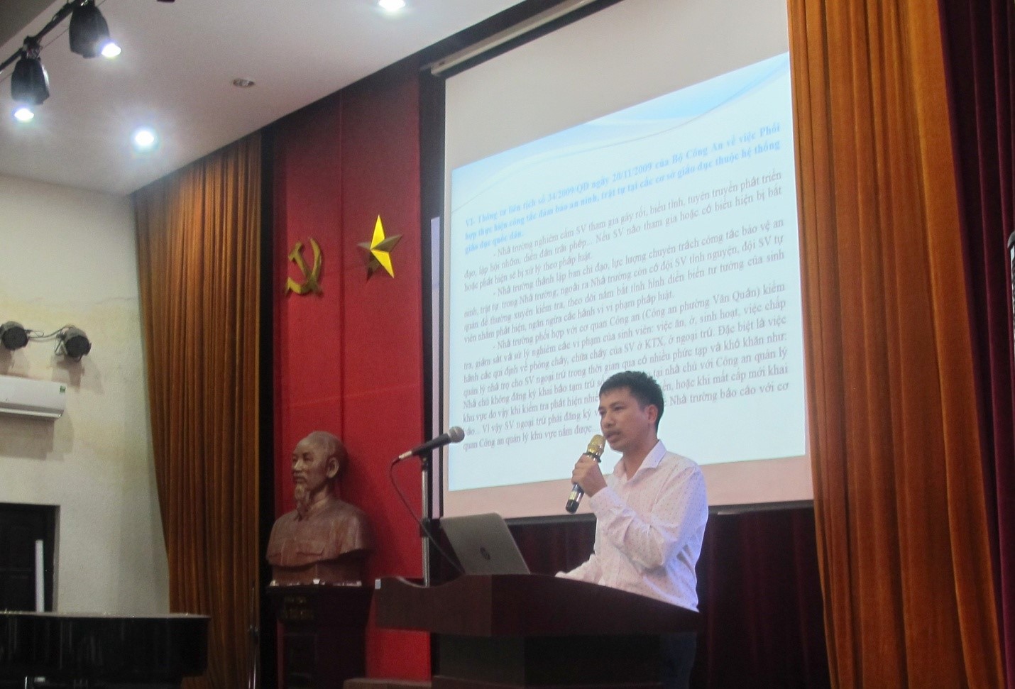 Ông Đồng Văn Thuật – Phó Trưởng phòng Công tác học sinh – sinh viên phổ biến quy chế sinh viên nội trú – ngoại trú