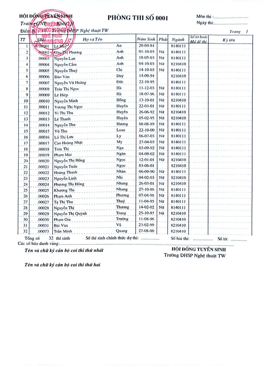 Danh sách thí sinh thi đợt 1 thạc sĩ sau đại học năm 2026
