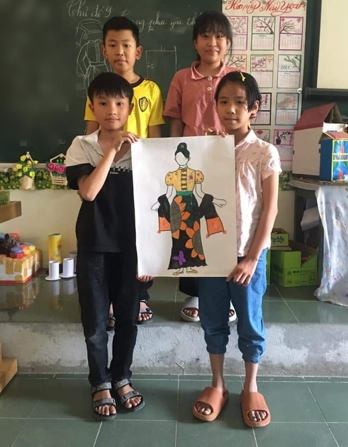 Tính mới của cách khai thác này là học sinh được trải nghiệm vẻ đẹp tạo hình và giá trị văn hóa của hoa văn trên trang phục đồng bào Thái của địa phương.