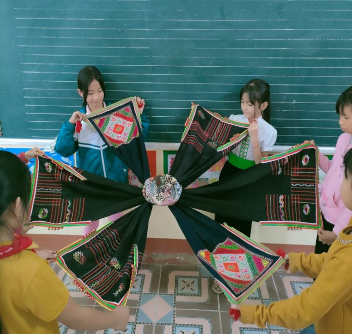 Tính mới của cách khai thác này là học sinh được trải nghiệm vẻ đẹp tạo hình và giá trị văn hóa của hoa văn trên trang phục đồng bào Thái của địa phương.