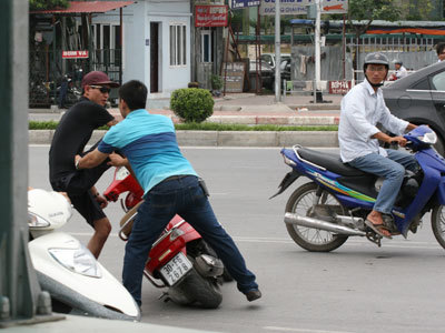 Khoảng 12h35 ngày 7/8, một người điều khiển chiếc xe máy Vespa trên đường Giải Phóng (Hà Nội) không đội mũ bảo hiểm vừa thấy bóng CSGT liền quay đầu xe định bỏ chạy thì lập tức một chiến sĩ Cảnh sát hình sự mặc áo thường phục có mặt kịp thời tóm gọn.