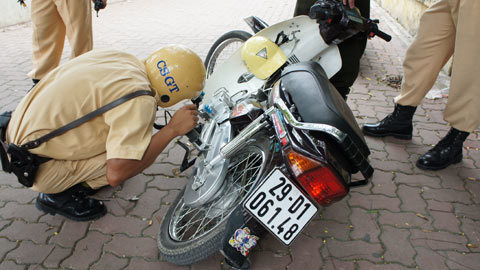 Hai người không đội MBH, không xuất trình được giấy tờ xe bị tạm giữ cùng chiếc xe máy.
