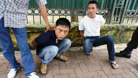 Khoảng 11h, trên Phố Bà Triệu (ngay trước tòa nhà Vincom), những đối tượng đi xe không đội mũ bảo hiểm khi thấy bóng lực lượng CSGT đã quay đầu định bỏ chạy thì ngay lập tức đã bị lực lượng cảnh sát hình sự cải trang bắt lại.